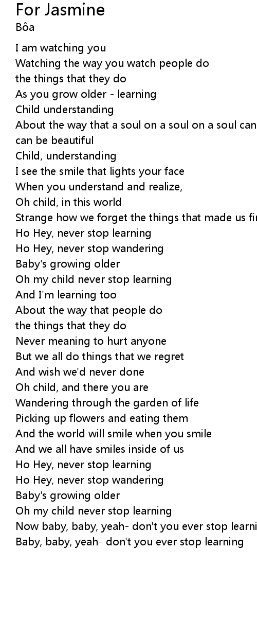 Now baby, baby, yeah- don't you ever stop learning |