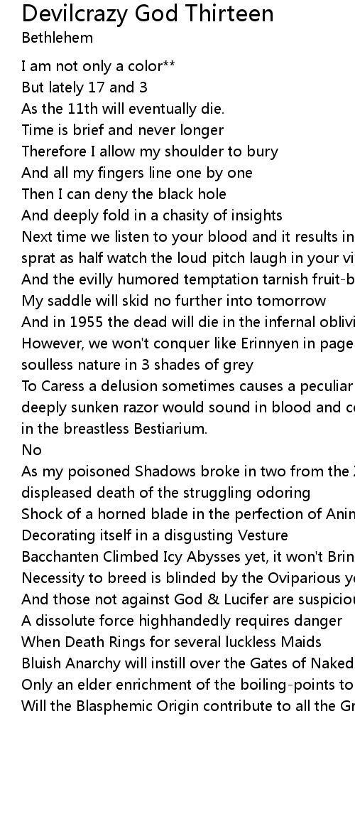 Next time we listen to your blood and it results in the sin of my strangled sprat as half watch the loud pitch laugh in your vicinity |