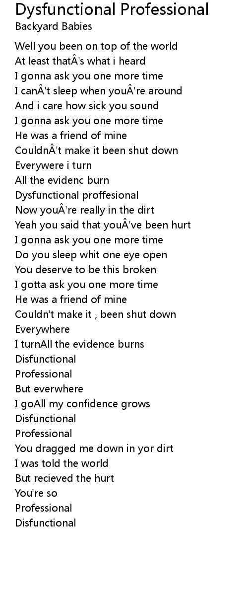 | Song | Dysfunctional Professional |