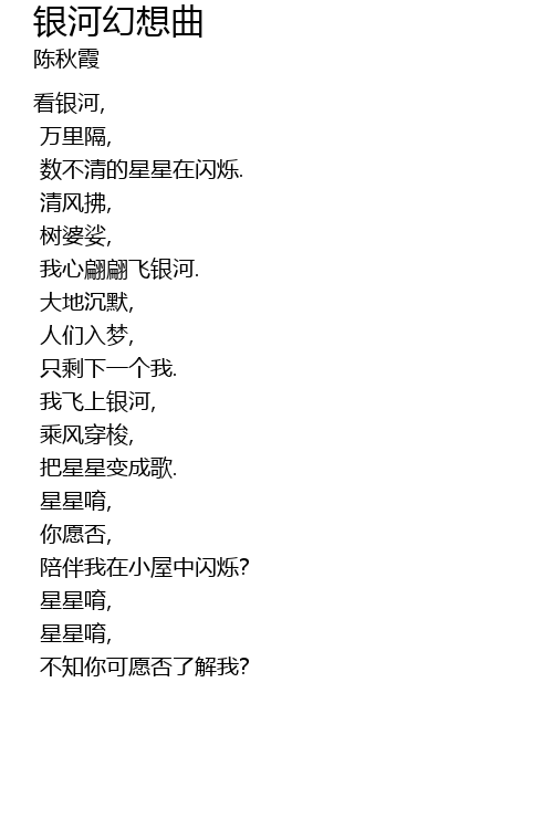 wǒ xīn piān piān fēi yín hé.