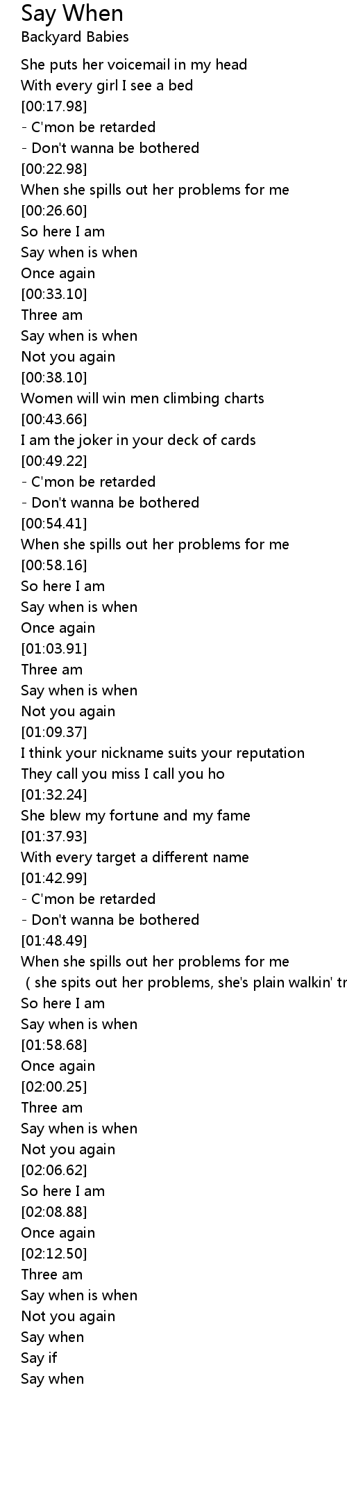 | [00:34.91] | Say when is when |