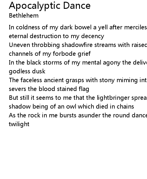 In coldness of my dark bowel a yell after mercilessness bequeaths a trace of eternal destruction to my decency |