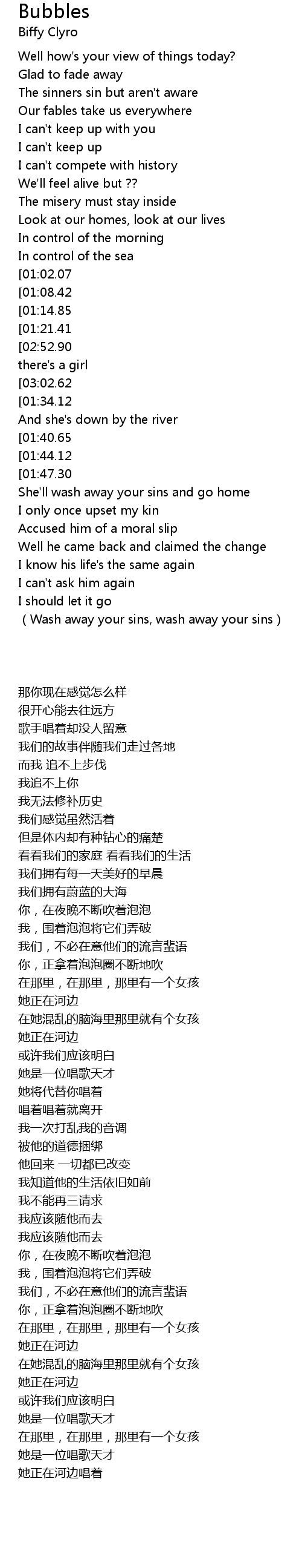| [01:50.58][01:47.30] | She' ll wash away your sins Wash away your sins |