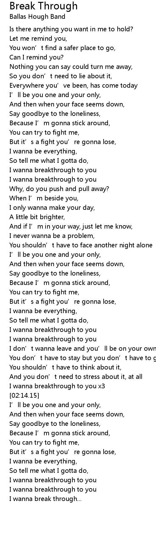 | [02:11.37] | I wanna breakthrough to you x3 |