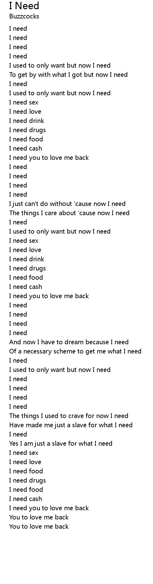 I used to only want but now I need |