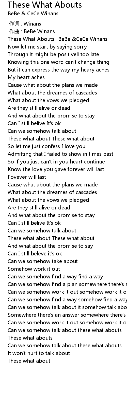 | [00:00.00] | These What Abouts BeBe CeCe Winans |