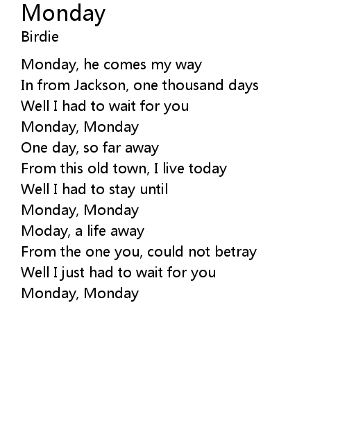 | Monday, Monday |