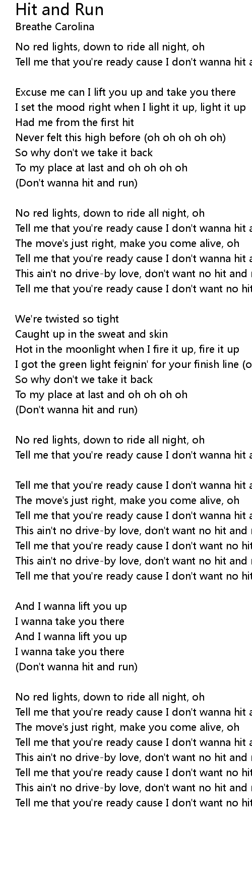 Tell me that you're ready cause I don't want no hit and run, run, run... |