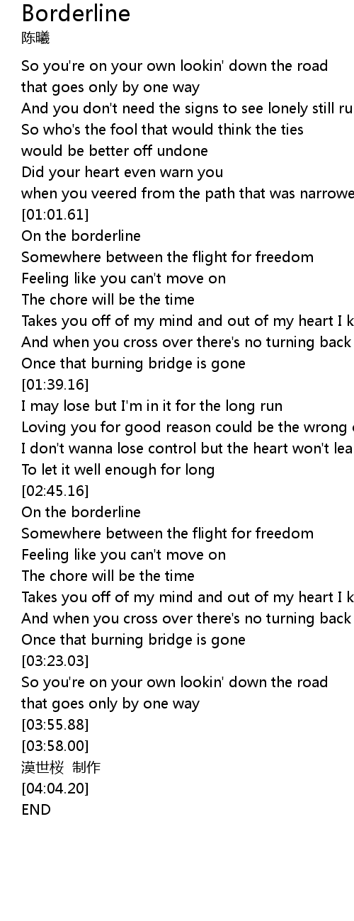 | [00:34.44] | And you don't need the signs to see lonely still runs both ways |