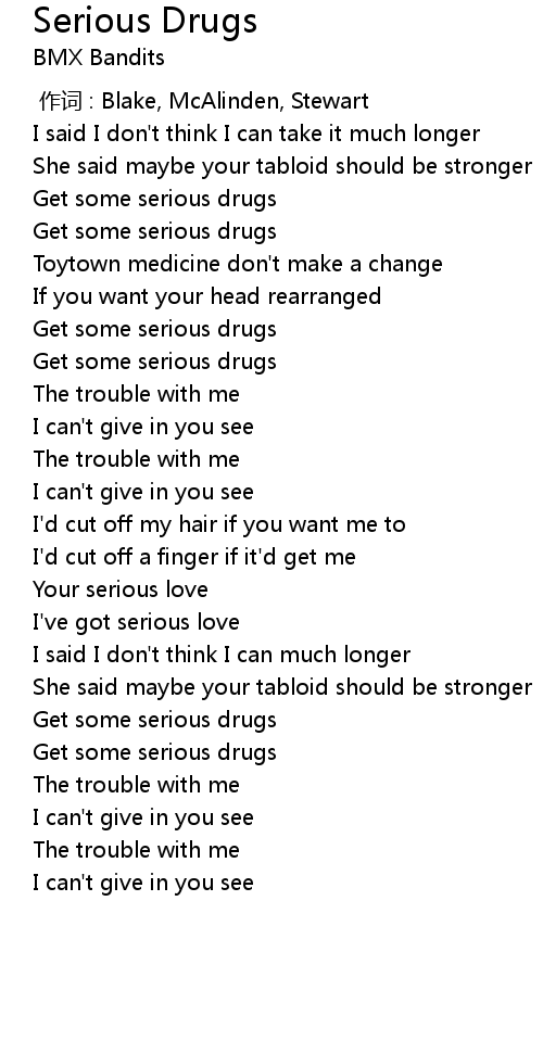 | [00:43.67] | Get some serious drugs |