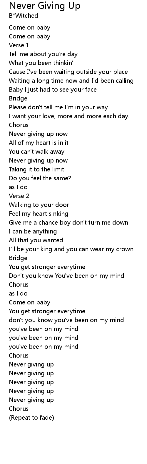 | Never giving up now | |