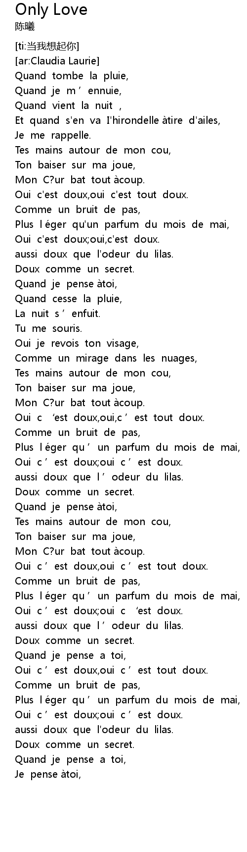 | [02:20.84] | Oui c ’est doux;oui c ’est doux. |
