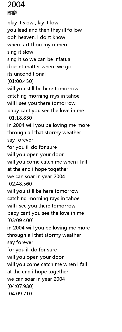 | [03:10.700] | in 2004 will you be loving me more |