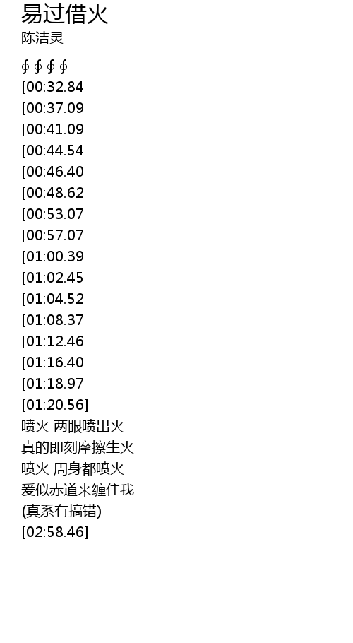 | [02:30.32][01:08.37] | 真的即刻摩擦生火 |