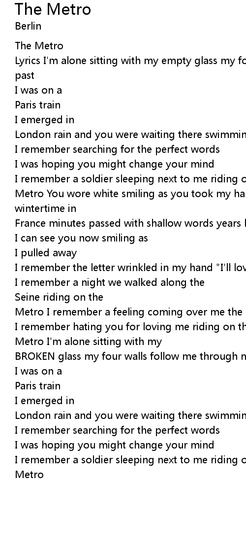 Metro I remember a feeling coming over me the soldier turned, then looked away |