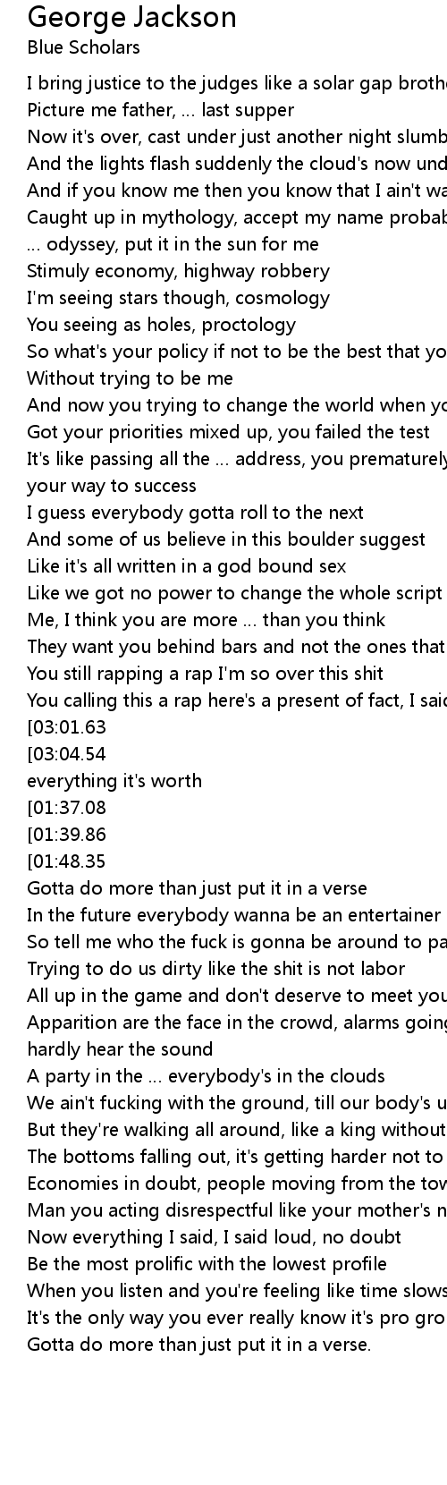 | [03:21.54] | Gotta do more than just put it in a verse. |