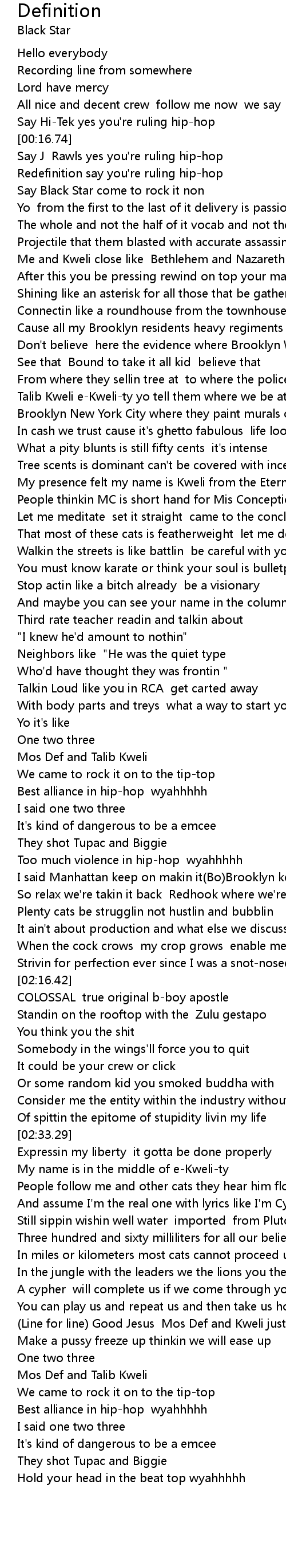 (Line for line) Good Jesus Mos Def and Kweli just |