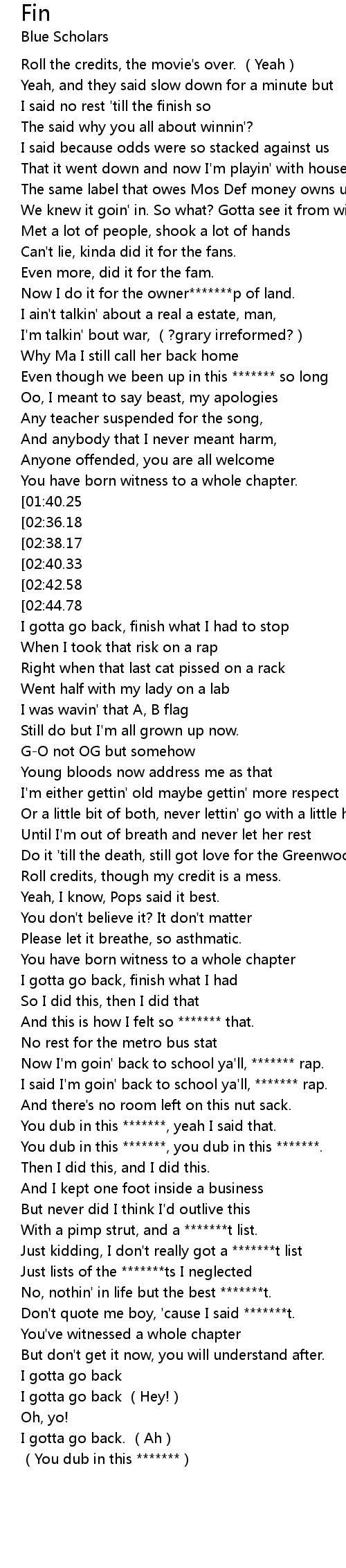 | [02:57.93] | I said I'm goin' back to school ya'll, ******* rap. |