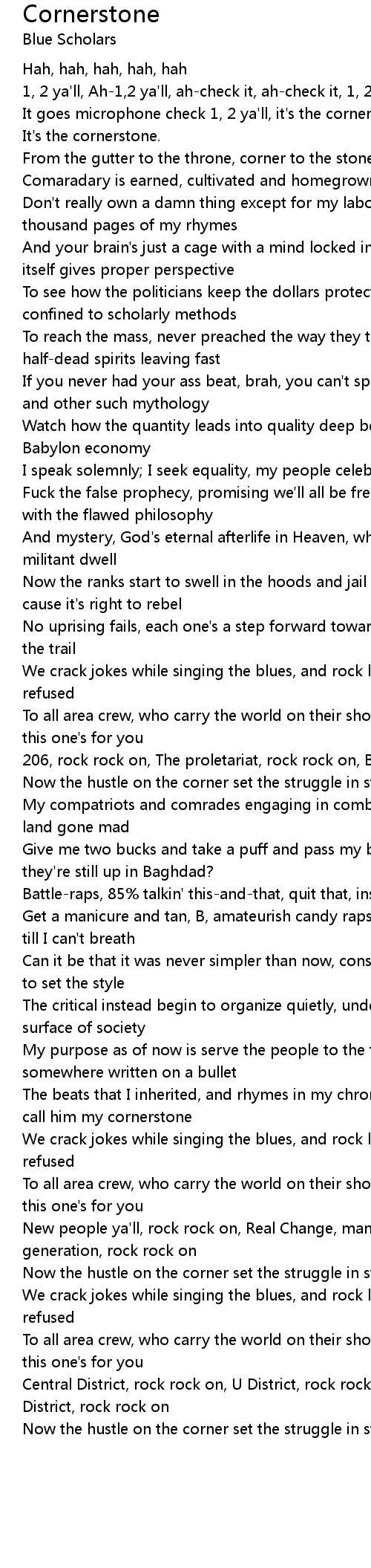 It goes microphone check 1, 2 ya'll, it's the cornerstone, ya'll