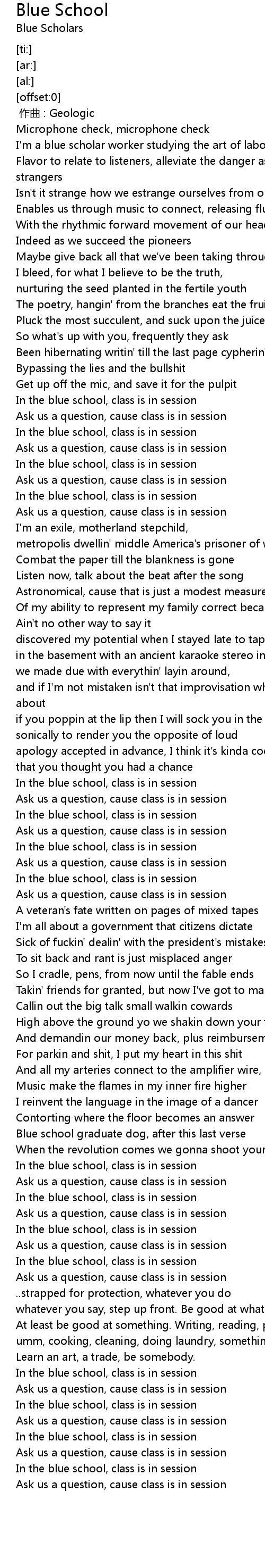 | [00:15.94] | I' m a blue scholar worker studying the art of labor to create |