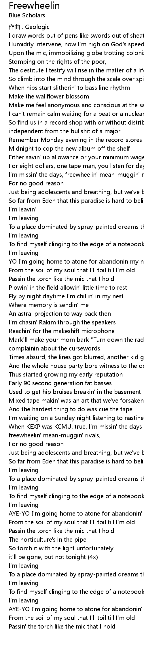 | AYE-YO I'm going home to atone for abandonin' my native tongue grown | |