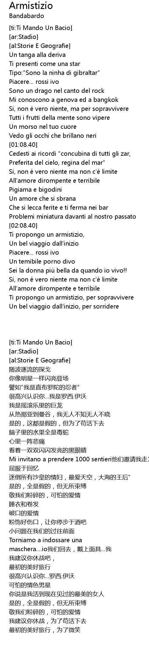 | [03:05.34] | Ti propongo un armistizio, per sopravvivere |
