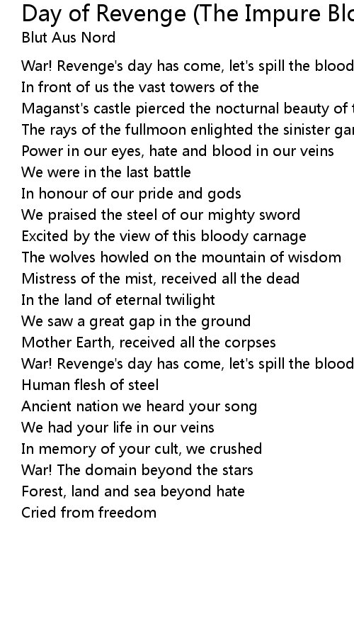War! Revenge's day has come, let's spill the blood of the bastard |