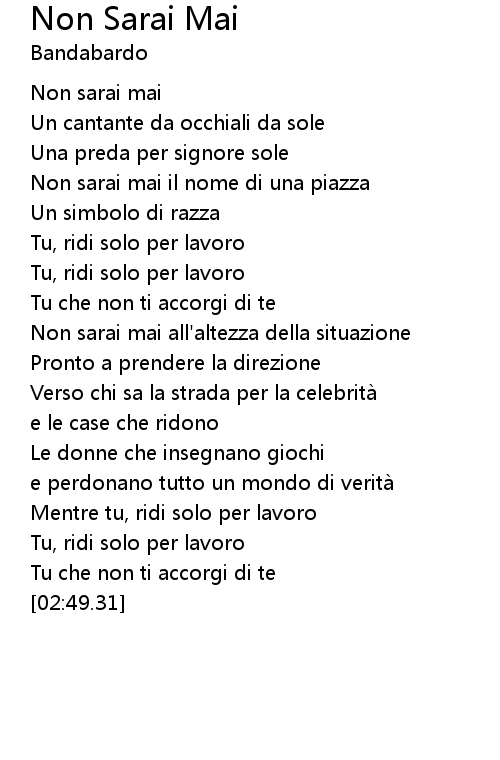 | [00:47.65] | Tu, ridi solo per lavoro |