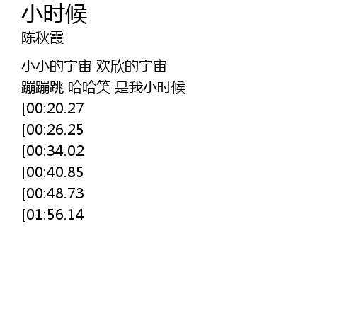 | [00:11.57] | 蹦蹦跳 哈哈笑 是我小时候 |
