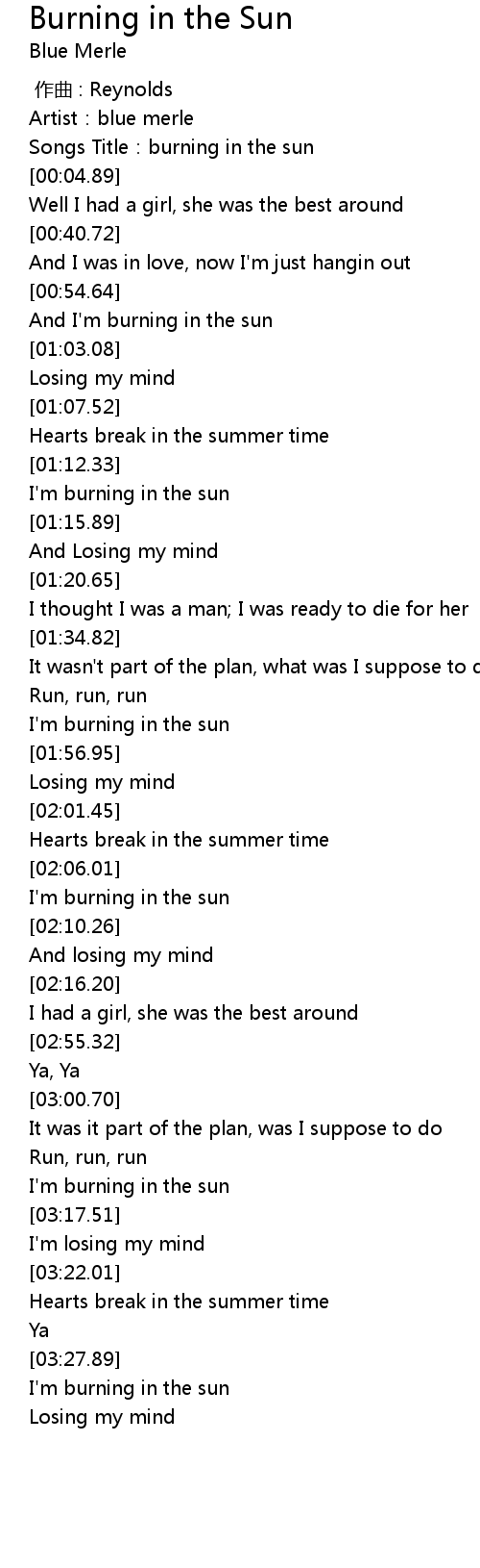 | [00:03.01] | Songs Title: burning in the sun |