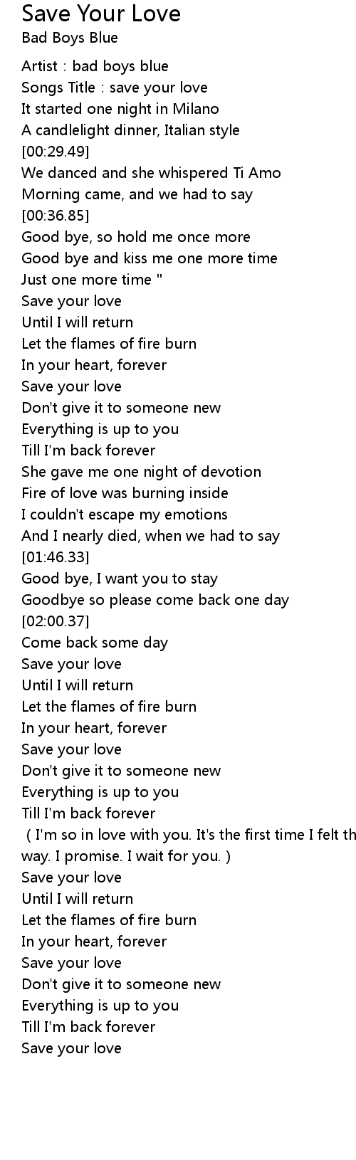 | [00:30.87] | We danced and she whispered Ti Amo |