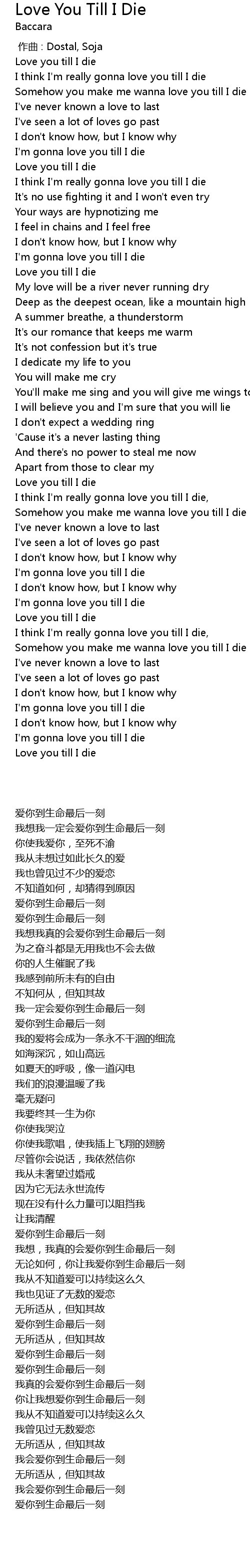 | [00:49.64] | I think I' m really gonna love you till I die |
