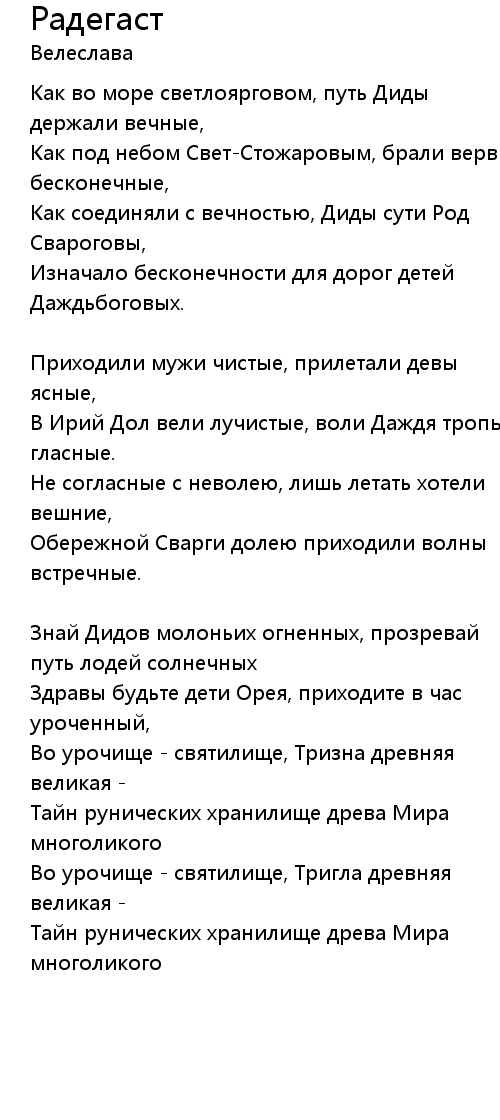 Радегаст  Lyrics
