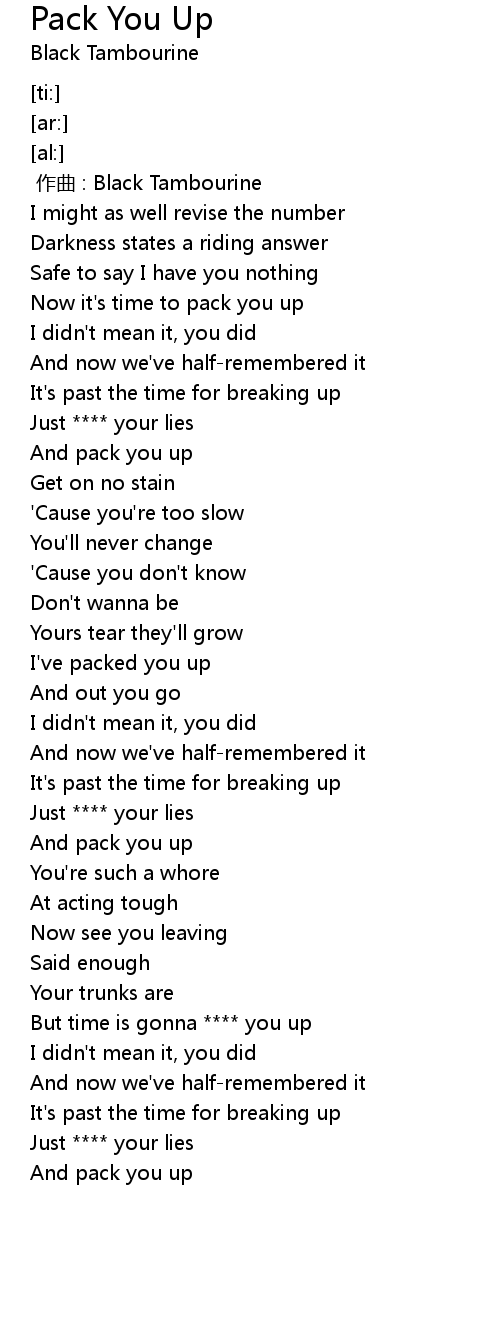 | [00:00.000] | zuò qǔ : Black Tambourine |