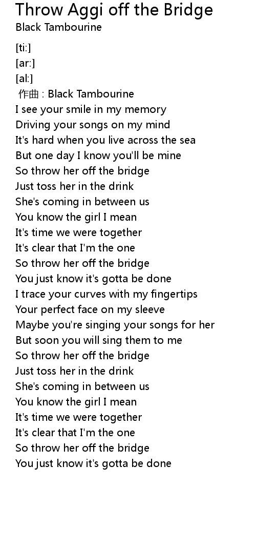 | [00:48.56] | So throw her off the bridge |