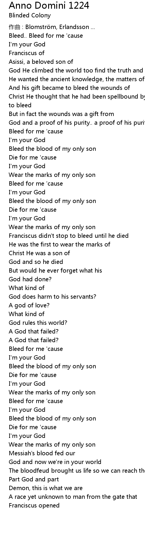| Christ He thought that he had been spellbound by the abyss ' cause he didn' t stop to bleed | |