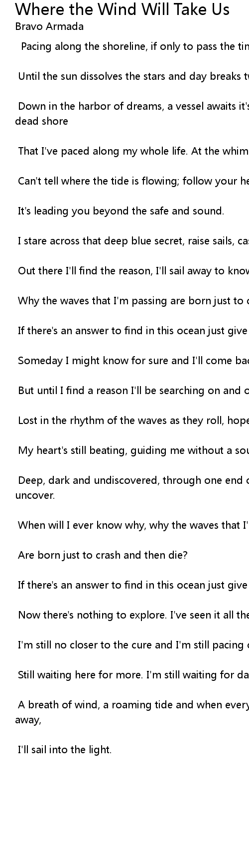 That I've paced along my whole life. At the whim of the wind that's blowing, |