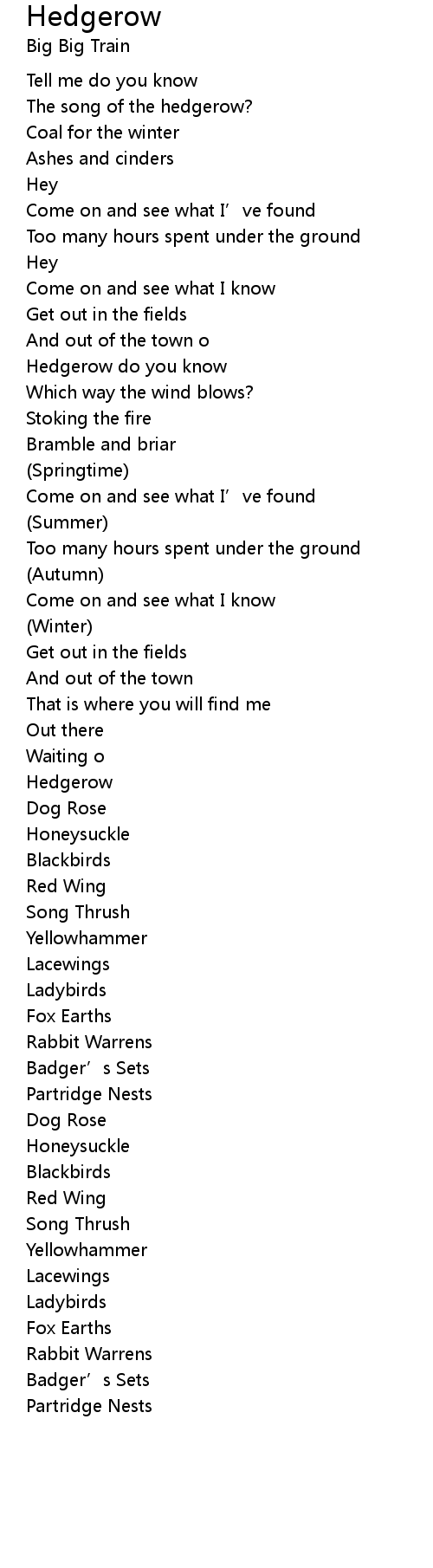 | Song | Hedgerow |