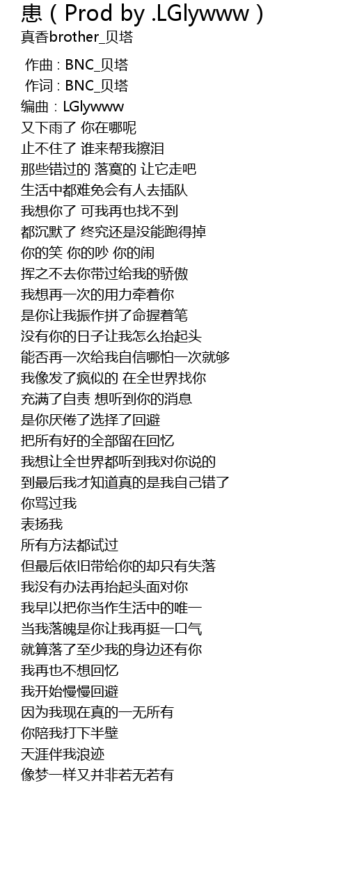| [00:01.000] | 作词 : BNC_贝塔 |