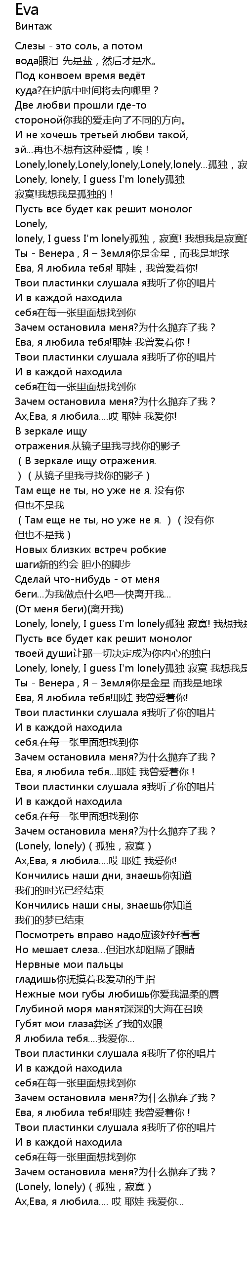 | [01:14.86] | Ева, Я любила тебя! 耶娃,我曾爱着你! |