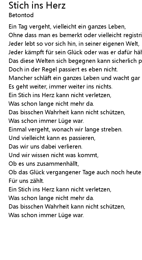 | Ein Stich ins Herz kann nicht verletzen, | |