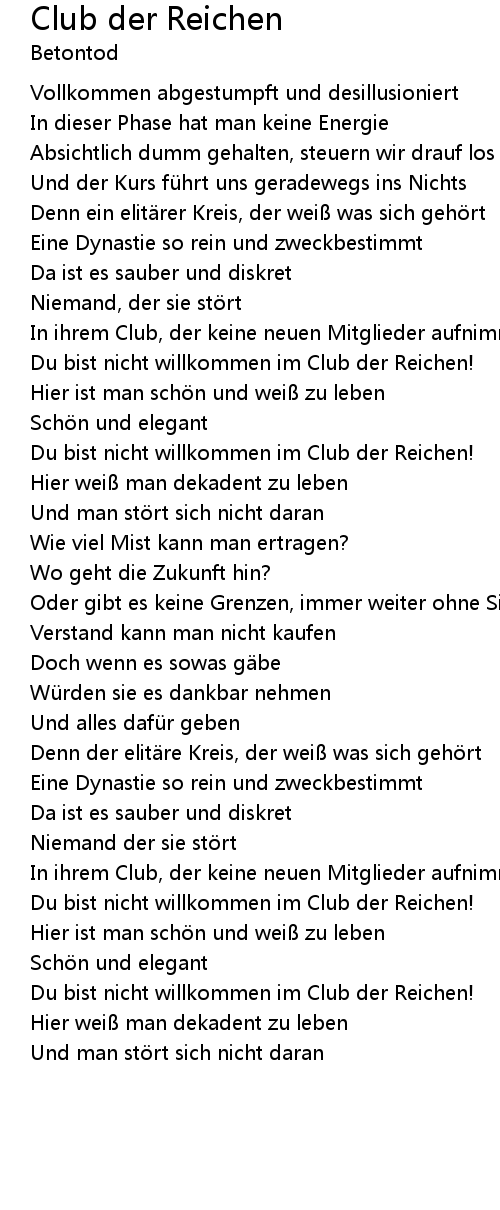 | Denn der elitäre Kreis, der weiß was sich gehört | |