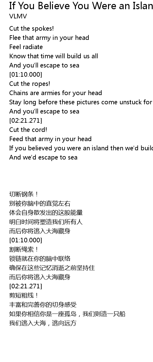 | [03:16.322] | If you believed you were an island then we'd build a boat |