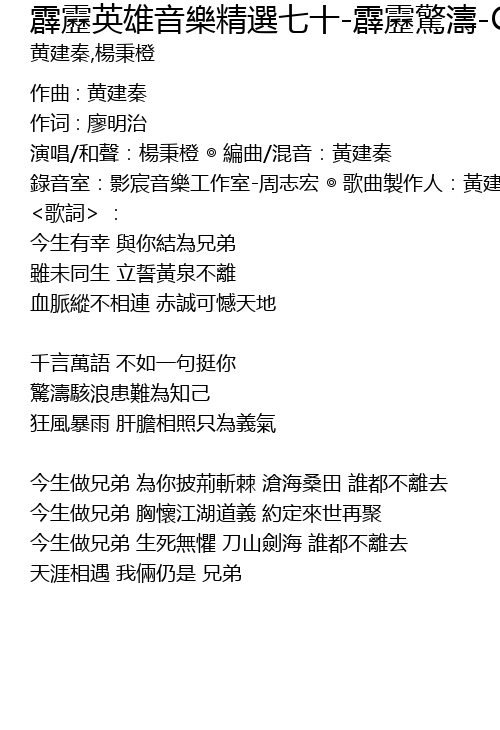 | lù yīn shì: yǐng chén yīn lè gōng zuò shì zhōu zhì hóng gē qǔ zhì zuò rén: huáng jiàn qín | |