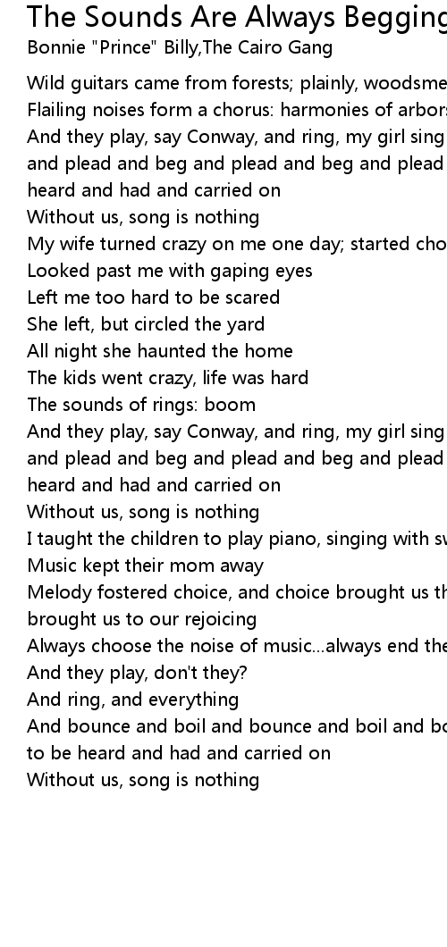 And they play, say Conway, and ring, my girl sing |