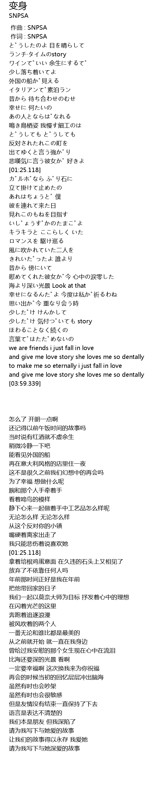 | [01:18.999] | 悲嘆気に言う彼女が 好きよ |