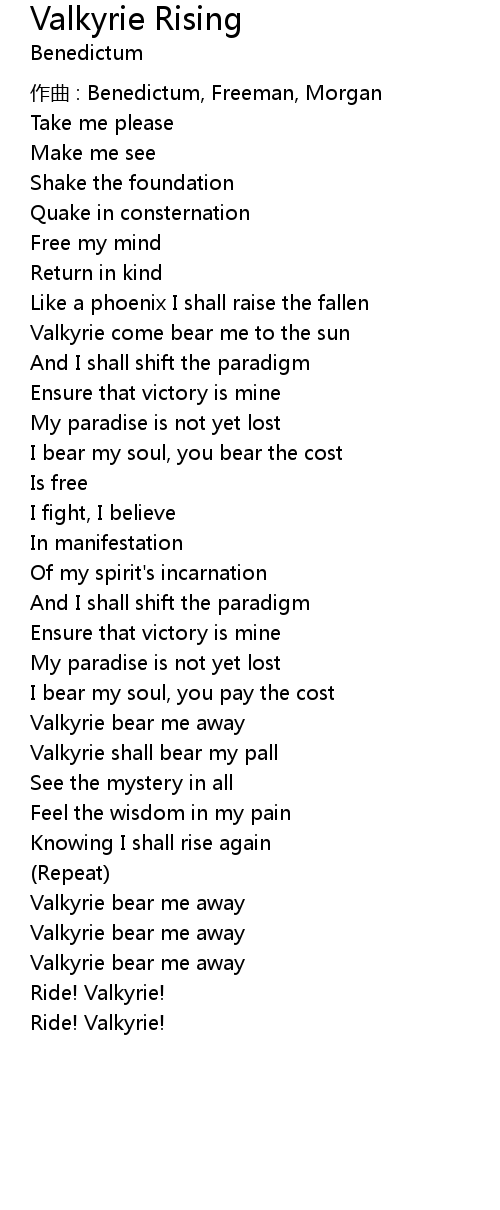 | Valkyrie bear me away | |