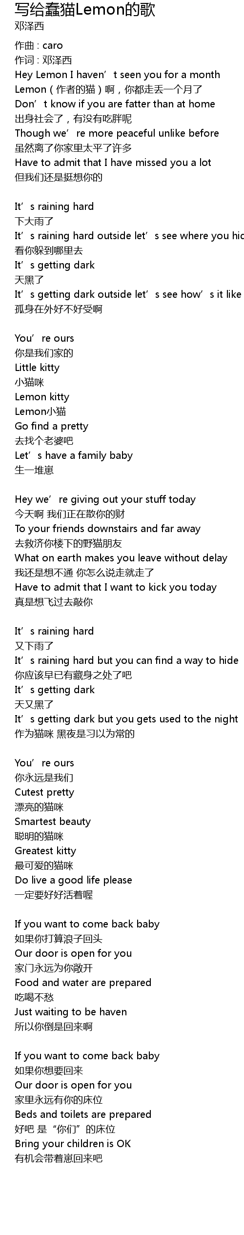| Lemon zuò zhě de māo a, nǐ dōu zǒu diū yí gè yuè le | |