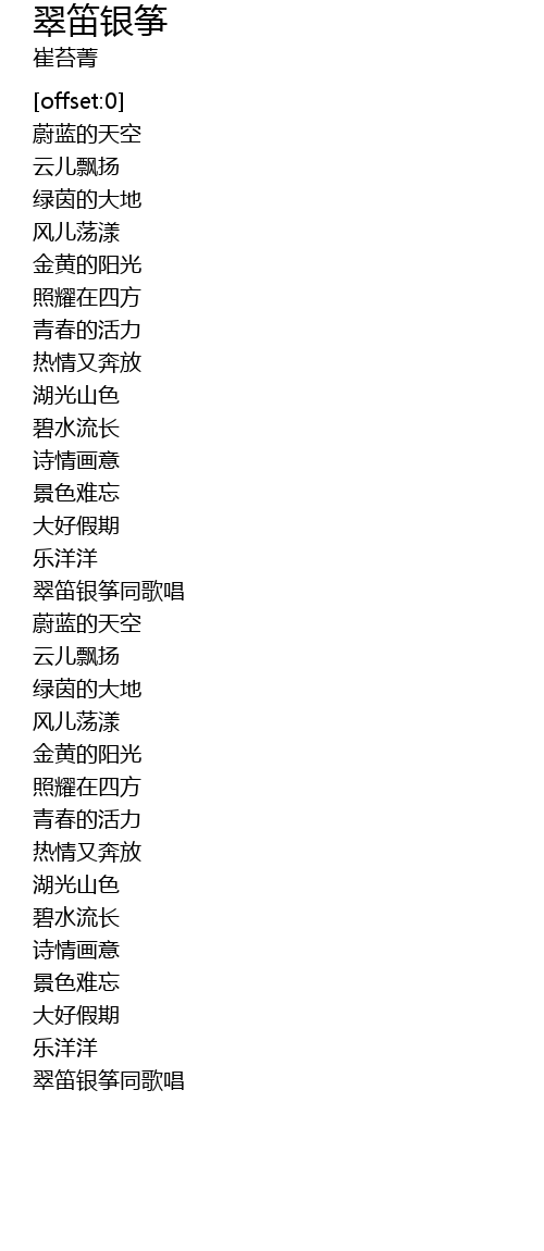 | [01:07.25] | cuì dí yín zhēng tóng gē chàng |