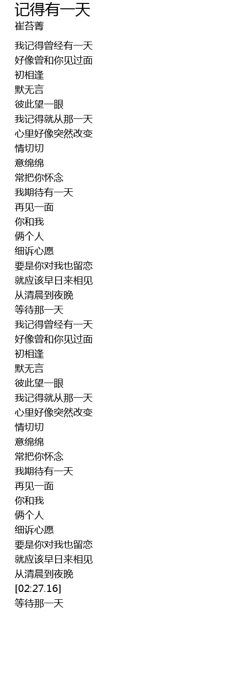 | [01:30.69] | wǒ jì de céng jīng yǒu yì tiān |
